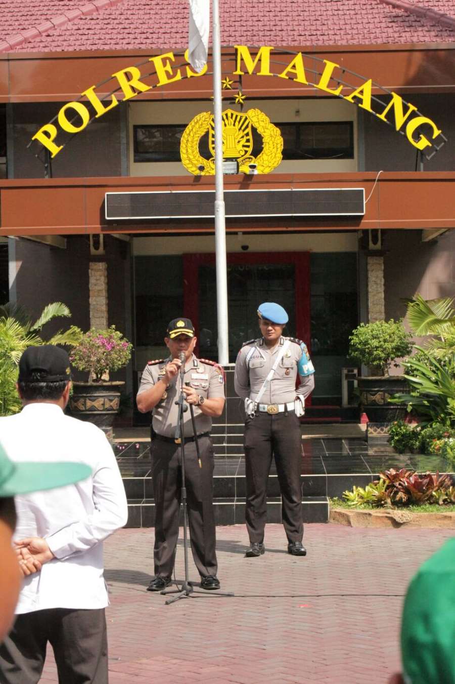 Dalam sambutannya Kapolres Malang menyampaikan banyak terima kasih kepada Kepala sekolah, Dewan Guru, wali murid serta adik-adik MI yang telah berkenan hadir ke Polres Malang ini.