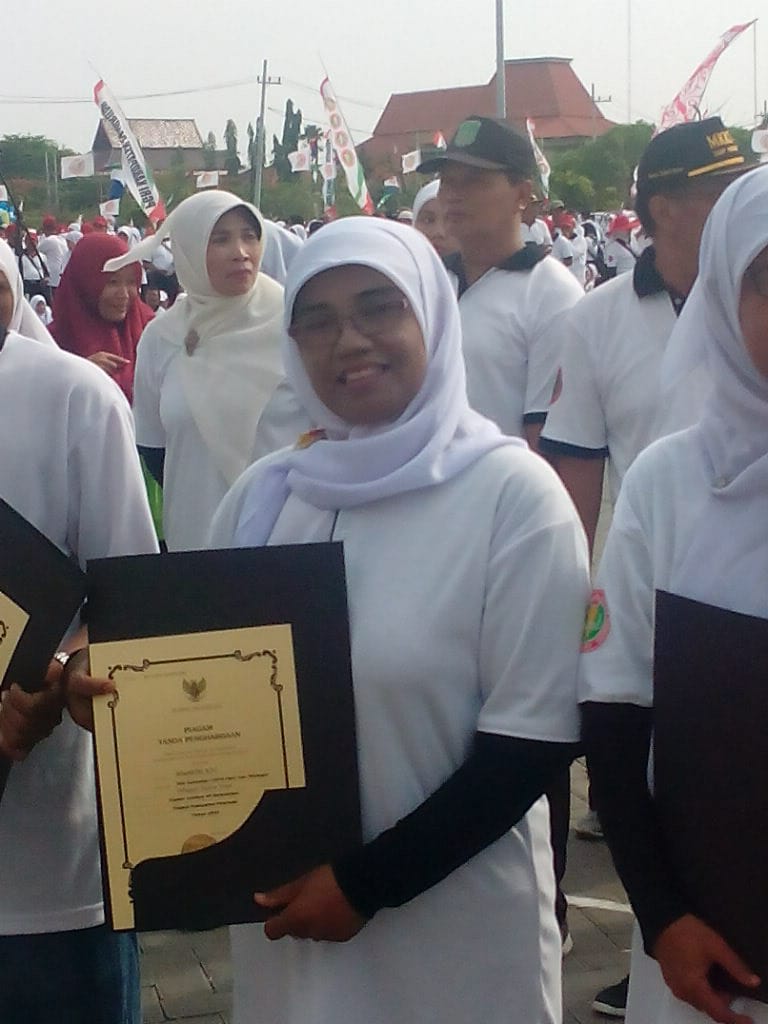 Penghargaan Kepala Sekolah berprestasi kepada Sulastri S.Pd diserahkan langsung oleh Bupati Pasuruan Irsyad Yusuf, di acara peringatan HUT PGRI ke 73 Dan Hari Guru Nasional di halaman Kantor Dinas Pendidiian Kabupaten Pasuruan, Sabtu (8/12/2018).