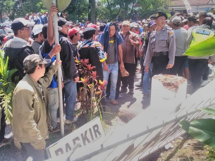 MALANG – LK. COM. Dengan menaiki puluhan truk, warga Desa Srimulyo, Kecamatan Dampit, Kabupaten Malang, Propinsi Jawa Timur mendatangi mako Polres Malang. Kedatangan ratusan warga untuk mempertanyakan penanganan kasus prona yang hampir 2 tahun di tangani oleh Polres Malang, Selasa (26/2/2019)