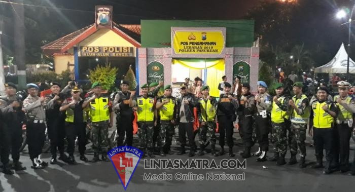 Ada 200 personel gabungan yang diterjunkan mengamankan malam takbiran ini. Semua personel harap tetap waspada, saling menjaga antar personel di lapangan untuk kemanan dan keselamatan,” kata Kapolres Pasuruan dalam sambutan apelnya, Menurut AKBP Rizal Martomo, pengamanan malam takbir dan lebaran Idul Fitri sudah menjadi tugas TNI dan Polri yang didukung instansi terkait dan elemen masyarakat lainnya. Hal itu untuk menciptakan rasa aman dan nyaman bagi masyarakat. Baik yang akan merayakan Idul Fitri maupun masyarakat agama lain yang memanfaatkan momen liburan untuk mudik dan bersilaturahmi. Pelaksanaan pengamanan akan dipimpin langsung Kabag Ops, Kasat Lantas dan kasat Sabhara, guna memastikan jalur Pantura tetap lancar. Sehingga masyarakat akan tetap nyaman menikmati malam takbir. Di samping juga untuk mencegah gangguan kamtibmas di pusat pertokoan dan keramaian masyarakat.( Red/Mbon )