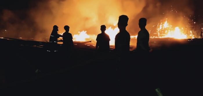 Menurut keterangan salah satu warga sekitar pukul.18.30 wib.melihat titik api di atas gudang yg berada di sebelah barat.Karena melihat hal tersebut menghubungin warga lainya untuk bersama-sama memadamkan api.sekitar pukul 19.00.wib.