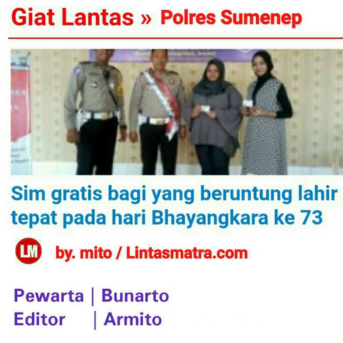 Lintas Matra - Media Online Nasional > Blog > Kabar Daerah > Sumenep > POLRES SUMENEP MEMBERIKAN PELAYANAN SIM GRATIS BAGI YANG LAHIRNYA BERSAMAAN DENGAN HUT BHAYANGKARA KE- 73, ( 01 JULI 2019 )