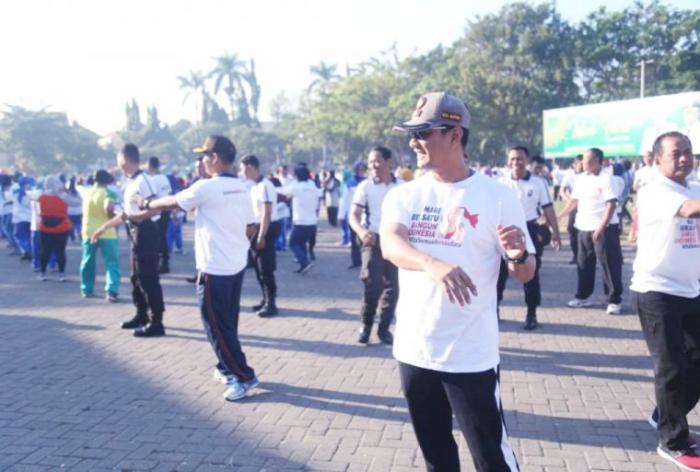 LINTASMATRA.COM – PASURUAN BANGIL, Polres Pasuruan menggelar olah raga bersama, di Alun – Alun Bangil dalam rangka menyambut hari Bhayangkara ke-73 Minggu (07/7/2019). Bersama ini kegiatan olah raga dihadiri pula oleh Kapolres Pasuruan AKBP. Rizal Martomo., S.I.K., M.H., Wakapolres Pasuruan. Kompol. Supriyono. S.Sos., PJU Polres Pasuruan Dan Seluruh Anggota Polres Pasuruan Serta Kurang Lebih Seribu Masyarakat Bangil mengikuti senam.