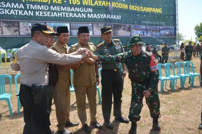 “Kami sangat mendukung kegiatan ini. Sebab, TMMD mampu memajukan Desa tertinggal. Tentunya, Pemkab Sampang siap mendukung segala aktifitas TMMD,” jelasnya. Sejatinya, kata dia, penerapan pola gotong-royong selama berlagsungnya program tersebut, dinilai mampu memperlancar proses pelaksanaan program TMMD di Kabupaten Sampang.