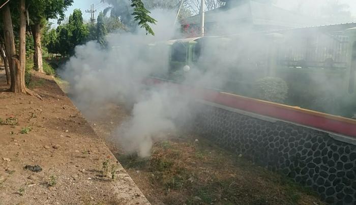 LINTASMATRA.COM – PASURUAN. Asap tebal membumbung tinggi pagi hari Jumat 26 Juli 2019 di depan halaman sekolah SMPN 2 Nguling, Kabupaten Pasuruan, Provinsi Jawa Timur ternyata begitu di dekati ternyata bukan kebakaran yang terjadi namun Kepala Sekolah bersama guru, TU dan securiti serta warga sekolah sedang melakukan aksi bersih – bersih di dalam bantaran sungai yang melintang di depan halaman tersebut.