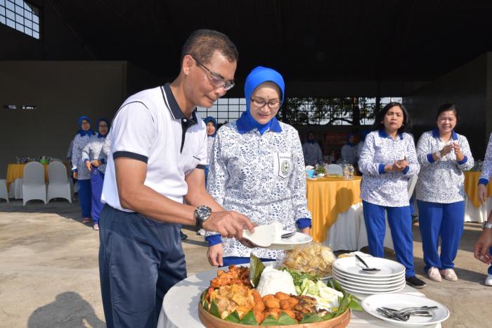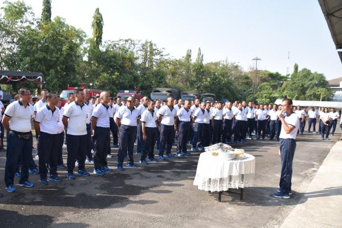 LINTASMATRA.COM – SURABAYA,-Komandan Pangkalan Utama TNI Angkatan Laut (Danlantamal V), Koarmada II, Laksma TNI Tedjo Sukmono S.H., CHRMP., melaksanakan Olahraga bersama dengan seluruh prajurit, PNS Lantamal V , Ibu Ketua Korcab V DJA II dan Pengurus Jalasenastri Korcab V DJA II di lapangan PMK Hangtuah, Jumat (2/8). Kegiatan dimulai dengan pemanasan dan dilanjutkan dengan lari, acara dilanjutkan dengan potong tumpeng dan memberikan sambutan ” bahwa setiap hari Jumat akan dilaksanakan Olahraga bersama di PMK Lantamal V.