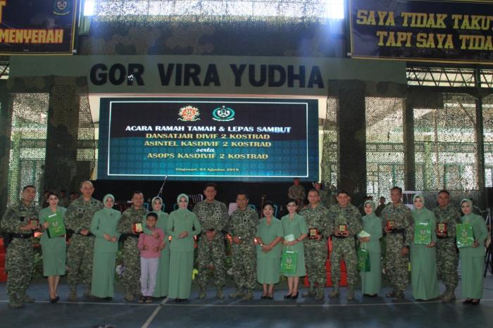 Lepas Sambut Pamen jajaran Divif 2 Kostrad ini diantara Kolonel Inf Robby Suryadi, Kolonel Inf Bangkit Rahmat Tri Widodo, M.Si (Han), Letkol Inf Roynald Sumendap Kolonel Arm Rama Hendarto Budhiyanto, S.Sos., Letkol Arm Didik Harmono serta Asintel Kasidif 2 Kostrad Kolonel Inf Putra Widyawinaya, S.H., Letkol Inf Hendriawan Senjaya, S.E, Kolonel Inf Jarot Suprihanto, Mayor Chb Bambang Agung Prasetyo, S.Sos., M.Tr. (Han), Letkol Chb Agung Budi Purnomo dan Letkol Inf Arif Kurniawan.