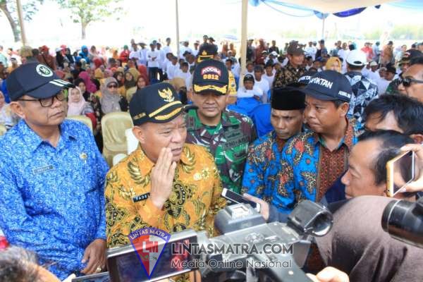 LINTASMATRA.COM – LAMONGAN,- Musim panen kini menyelimuti petani di Desa Truni, Kecamatan Babat, Kabupaten Lamongan, Jawa Timur. Bahkan, panen itupun dihadiri langsung oleh pihak Dirjen PSP Kementerian Pertanian RI, beserta beberapa Forkopimda Lamongan. Jumat, September 2019. Bupati Lamongan, H. Fadeli mengatakan jika para petani di Desa tersebut, telah berhasil memanen 10 ton padi per hektar. Hasil itu, menurutnya, merupakan suatu kebanggaan tersendiri bagi masyarakat Kabupaten Lamongan. “Hasil itu, diluar perkiraan. Apalagi, sekarang memasuki musim kemarau,” ujarnya.