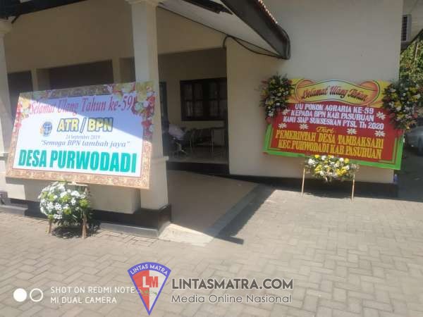 Peringatan Hari Agraria dan Tata Ruang Nasional ke 59 Tahun 2019 diawali dengan pemasangan spanduk, banner, umbul-umbul dan billboard di halaman/lingkungan Kantor Agraria dan Tata Ruang/Badan Pertanahan Nasional, ( ATR/BPN ) kabupaten Pasuruan Jln : Pahlawan, Rabu ( 25/09/2019). Dalam hal ini, Petrus Khudmas SH.MH Kepala BPN Kabupaten Pasuruan, Pada HUT ATR/ BPN Ke 59 TA 2019.