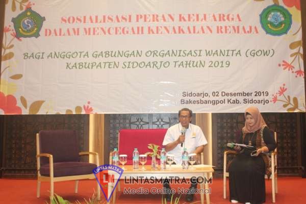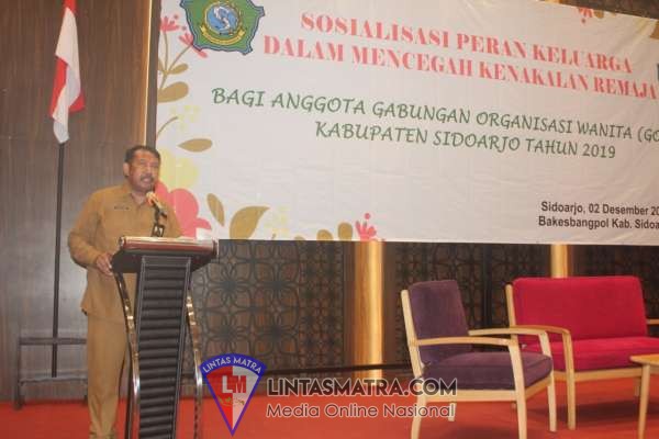 LINTASMATRA.COM – SIDOARJO. Seratus lebih ibu-ibu yang tergabung dalam anggota Gabungan Organisasi Wanita (GOW) Kabupaten Sidoarjo mendapatkan pembekalan dalam mencegah kenakalan remaja. Pengetahuan tersebut disampaikan dalam “Sosialisasi Peran Keluarga Dalam Mencegah Kenakalan Remaja” yang diselenggarakan GOW Kabupaten Sidoarjo bersama Badan Kesatuan Bangsa Politik Kabupaten Sidoarjo di Fave Hotel Sidoarjo, Senin, (2/12).