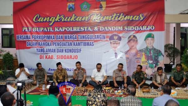 LINTASMATRA.COM – SIDOARJO. Cangkrukan kamtibmas kali ini digelar Polresta Sidoarjo di Kantor Kecamatan Tanggulangin, pada Kamis (23/1/2020) malam. Dihadiri Kapolresta Sidoarjo Kombespol Zain Dwi Nugroho, Plt. Bupati Sidoarjo Nur Ahmad Syaifudin, Kepala Dinas Pemberdayaan Masyarakat dan Desa Kabupaten Sidoarjo M. Ali Imron, serta Forkopimka Tanggulangin, kepala desa dan calon kepala desa se-Kecamatan Tanggulangin, tokoh agama, tokoh masyarakat dan warga setempat.