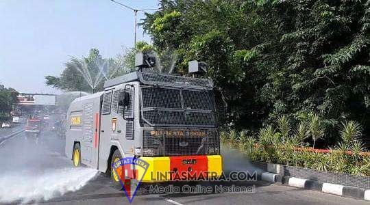LINTASMATRA.COM-SIDOARJO. Polresta Sidoarjo lakukan penyemprotan disinfektan massal serentak di berbagai wilayah Kabupaten Sidoarjo, pada Selasa (31/3/2020). Penyemprotan guna memutus mata rantai penyebaran Virus Corona (Covid-19), ini dilaksanakan secara menyeluruh bersama instansi terkait.