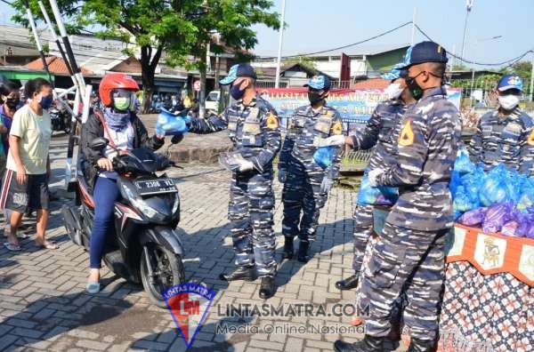 LINTASMATRA.COM – SURABAYA. Banyak cara membantu meringankan masyarakat yang terdampak Covid-19, salah satunya seperti yang dilakukan Taruna AAL Tingkat IV Angkatan ke-65 yang tergabung dalam Satuan Latihan (Satlat) Hiu, Latihan Integrasi Taruna Wreda Nusantara (Latsitardanus) XL/2020 dengan membagikan sarapan pagi pada masyarakat di kawasan Jl. Raya Gresik, Surabaya, Selasa (14/4).