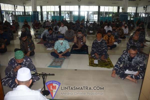 Tampak hadir dalam acara doa dan dzikir bersama ini, Wakil Komandan Lantamal V Kolonel Marinir Jasiman purba, S.E., Para Asisten Danlantamal V, Kasatker, dan seluruh perajurit serta PNS Mako Lantamal V Surabaya. (Dispen Lantamal V). (Red)