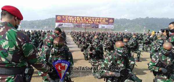 Komandan Pangkalan TNI AL (Danlanal) Cilacap, Letkol Laut (P) Bambang Marwoto, PSC.,M.S, Upacara Penutupan Latihan Raider Satjar Kostrad Ta 2020 di Lapangan Kesatrian Amirul Isnaeni, Daun Lumbung, Jalan Veteran Cilacap. Jum’at (28/08/2020).