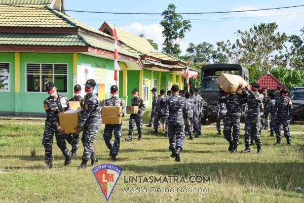 Taruna-Taruni Akademi Angkatan Laut (AAL) Tingkat IV Angkatan ke-66 yang tengah melaksanakan Latihan Praktek Pelayaran Jalayudha onboar di KRI Karel Sasuit Tubun-(KST) 356 dan KRI Diponogor (DPN) – 365 menggelar Bakti Sosial saat sandar di Pulau Sebatik, Kabupaten Nunukan, Kalimantan Utara, Kamis (19/11).