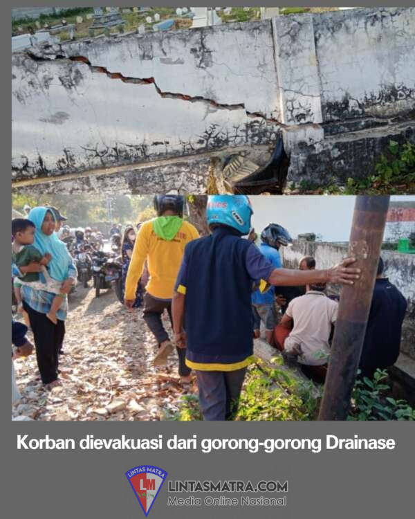 Insiden tersebut terjadi pagi hari sekitar jam.06.30. wib. terlihat korban membujur masuk disaluran gorong-gorong drainase kering dipinggir pagar kuburan