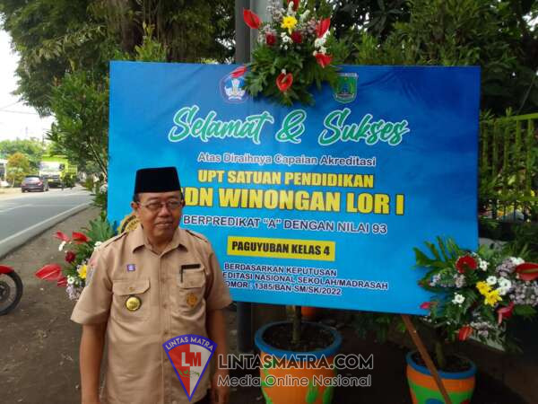 Winongan – Sumringah nampak di raut wajah Kepala Sekolah SDN Winongan Lor 1, Kecamatan Winongan Kabupaten Pasuruan Propinsi Jawa – Timur H. M. Agus SPd, pasalnya lembaga pendidikan yang di nahkodainya menorehkan prestasi yang gemilang di tahun 2022. Berdasarkan keputusan Badan Akreditasi Nasional (BAN) Sekolah / Madarasah Nomor : 1385/BAN-SM/SK/2022, SDN Winongan Lor 1 Berpredikat ‘A’ dengan nilai 93.