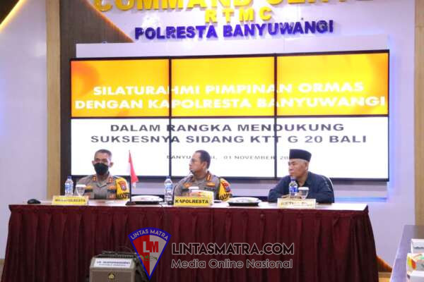 BANYUWANGI-Polresta Banyuwangi menggandeng Forum Kerukunan Umat Beragama (FKUB) dan Pimpinan Ormas di Bumi Blambangan, untuk bersama-sama menyukseskan Konferensi Tingkat Tinggi (KTT) G20 Bali.