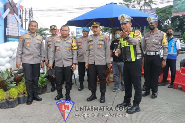 PASURUAN- Kapolres Pasuruan AKBP Bayu Pratama Gubunagi, S.H., S.I.K., M.Si. didampingi Kasat Lantas Polres Pasuruan AKP Yudhi Anugrah Putra, S.I.K., M.H. menyambut kedatangan Kapolda Jawa Timur, Irjen Pol Dr. Toni Harmanto, M.H. beserta rombongan PJU Polda Jatim saat melakukan pengecekan Pos Pelayanan Polres Pasuruan di Exit Toll Taman Dayu Pandaan pada momen libur Natal tahun 2022, Minggu (25/12/2022). Dilanjutkan melakukan pengecekan di obyek wisata Cimory Kecamatan Prigen.