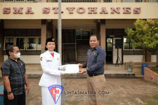 Penyerahan beasiswa secara langsung diberikan kepada Sabda Sadewa Baadillah, siswa SMA Negeri 1 Pontianak dan Theresia Novennia Decianty siswi asal SMA Pangudi Luhur Santo Yohanes Kabupaten Ketapang.