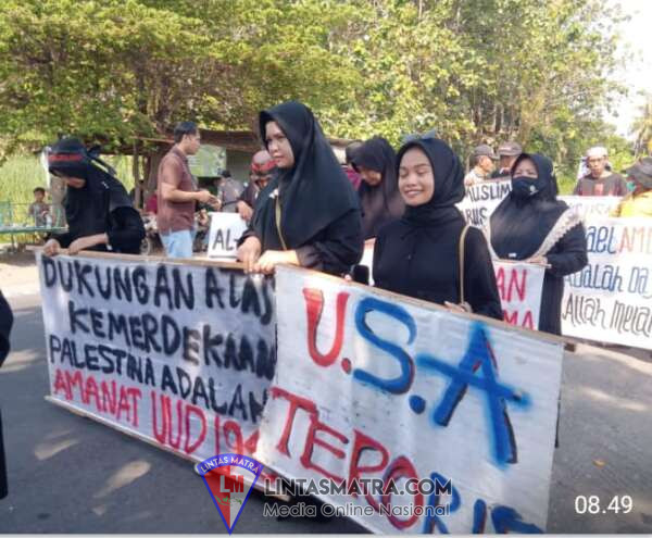 Pantauan Lintasmatra.com. ratusan peserta yang tergabung dalam Barigade Solidaritas Palestina dengan membawa poster yang bertulisan menolak gencatan senjata serta kekejaman Zionis Israel terhadap Palastina, kutuk Amerika selaku Banker dunia terhadap Israel.