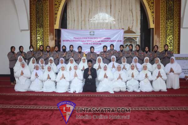 PASURUAN- Peringatan Isra’ Mi’raj Nabi Muhammad SAW jatuh pada 27 Rajab 1445 Hijriah / 2024 Masehi, sebagai wujud rasa cinta Umat Muslim kepada Baginda Nabi Muhammad SAW, Polres Pasuruan melaksanakan kegiatan Do’a Bersama di Masjid Rofiqul Ummah Polres Pasuruan dengan tema “Hikmah Isra’ Mi’raj Menanamkan Moral Dalam Mewujudkan Polri Yang Presisi Siap Mengawal Pemilu Damai”, Jum’at (09/02/2024).