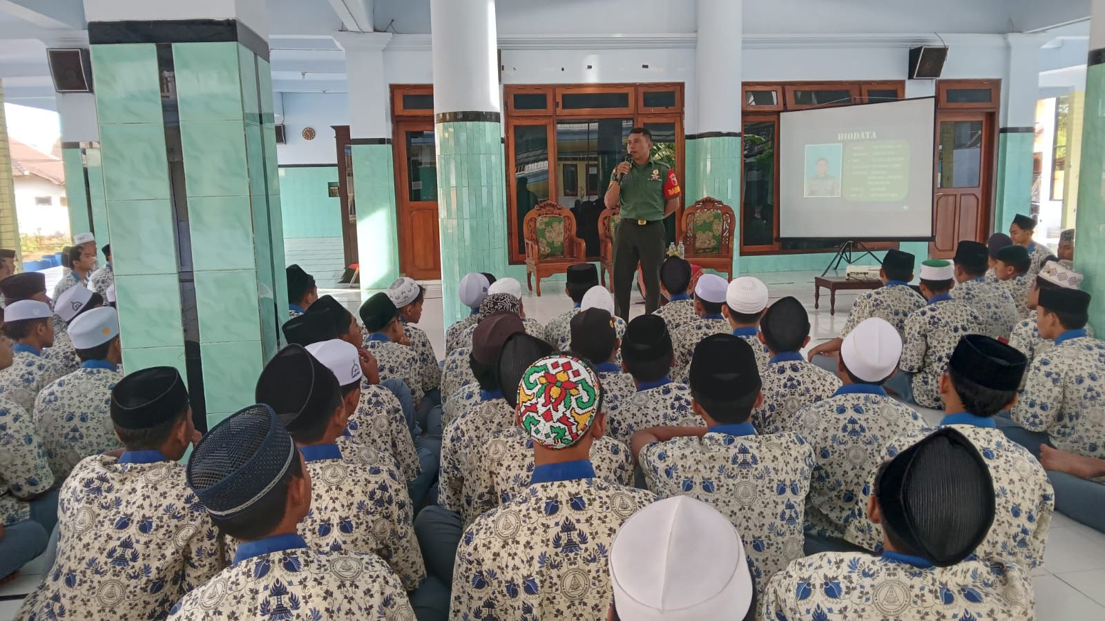 Malang – Danramil Koramil 0818/35 Pagelaran Lettu Inf Supi’I beserta anggota melaksanakan kegiatan pemberian materi wawasan kebangsaan, bela negara, dan motivasi kepada siswa-siswi Pondok Pesantren Al-Khoirot yang bertempat di Masjid Al-Madinah Desa Karangsuko, Kecamatan Pagelaran, Kabupaten Malang. Kegiatan ini bertujuan untuk meningkatkan pemahaman dan kesadaran para siswa tentang pentingnya cinta tanah air, bela negara, dan nilai-nilai kebangsaan,Rabu 04/07/2024.