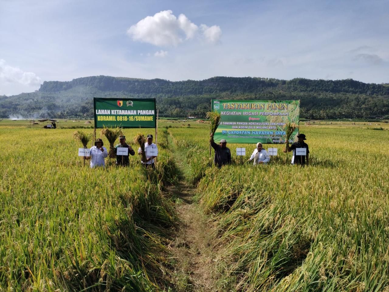 Malang – Danramil Koramil 16/Sumawe, Kapten Inf Irawan, terlibat aktif dalam kegiatan tasyakuran panen padi dan penyerahan bantuan pompa air di Desa Sitiarjo, Kecamatan Sumbermanjing Wetan, Kabupaten Malang, Senin 15/07/2024.