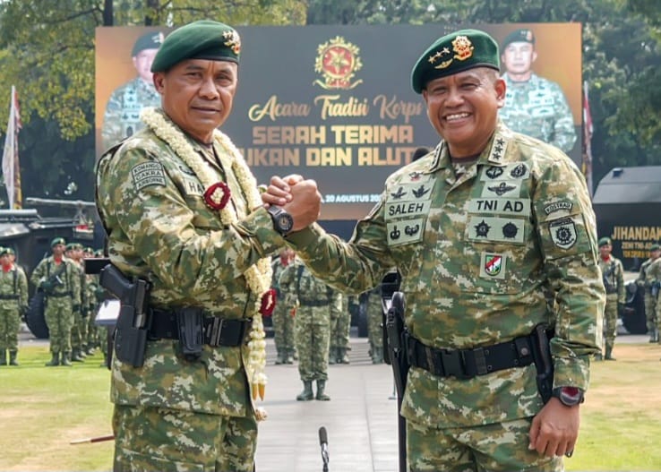 Jakarta – Kepala Staf Angkatan Darat (Kasad) Jenderal TNI Maruli Simanjuntak, M.Sc, memimpin serah terima jabatan Panglima Kostrad (Pangkostrad) dari Letjen TNI Muhammad Saleh Mustafa kepada Mayjen TNI Mohamad Hasan, yang berlangsung di Aula Jenderal Besar A.H. Nasution, Markas Besar Angkatan Darat (Mabesad), Jakarta Pusat, Selasa (20/8/2024).