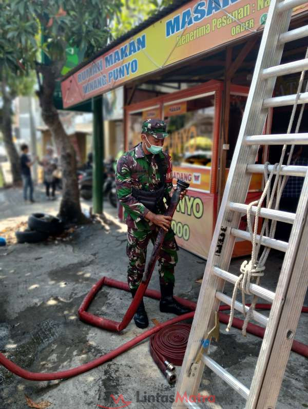 Lintas Matra - Media Online Nasional > Blog > Kabar Daerah > Surabaya > Aksi Sigap Babinsa Koramil 0830/11 Rungkut Tanggulangi Kebakaran di Warung Milik Warga