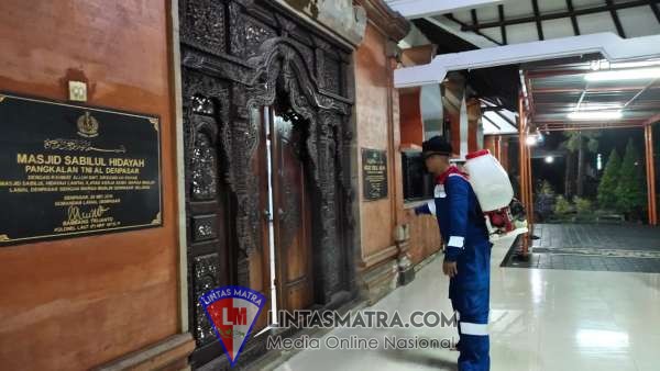 CEGAH VIRUS CORONA PMM DENPASAR LAKSANAKAN PENYEMPROTAN DI MASJID SABILUL HIDAYAH