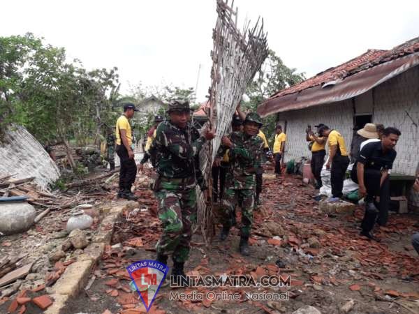 SINERGITAS TNI-POLRI PAMEKASAN DI LOKASI PASCA ANGIN PUTING BELIUNG